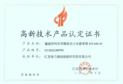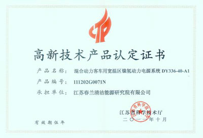 近日,江蘇春蘭清潔能源研究院有限公司再傳捷報(bào),公司《磁懸浮列車用鎳氫動(dòng)力電源系統(tǒng)DY440-45》和《混合動(dòng)力客車用寬溫區(qū)鎳氫動(dòng)力電源系統(tǒng)DY336-40-A1》于2011年10月均獲得了江蘇省高新技術(shù)產(chǎn)品認(rèn)定。