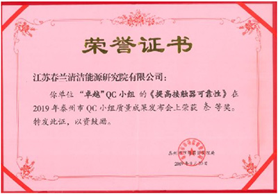 近日,江蘇春蘭清潔能源研究院有限公司“卓越QC小組”的《提高接觸器可靠性》的成果參加了泰州市技術監(jiān)督局組織的評審活動,并入選了QC小組發(fā)布會,發(fā)布會上,我司QC小組代表以飽滿的熱情進行了深入淺出的講解,用生動的語言、詳實的資料、精美的圖片,運用多媒體投影幻燈片的形式將改善成果進行了精彩的展示,得到評委的一致好評,最終榮獲泰州市三等獎的好成績。