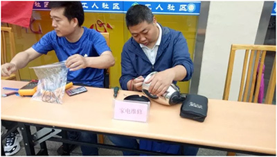 為大力弘揚和踐行雷鋒精神,促進企業(yè)精神文明建設工作上水平、上臺階,充分發(fā)揮黨員干部的先鋒模范作用,近期,在泰州市總工會的組織下廣大黨員志愿者來到工人社區(qū),開展“黨員進社區(qū)”義務維修家電志愿服務活動。 春蘭清潔能源的黨員志愿者秦勇、黃國勤,來到居民小區(qū)門前,為了方便群眾,他們自帶工具和配件,很多居民群眾把家中的壞家電,如電水壺,電飯煲、電風扇等拿來維修,他們都認真接待,詢問電器故障,然后埋頭進行維修,得到了居民們的一致稱贊。