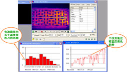 利用紅外熱像儀應用技術根據(jù)與物體表面的熱分布場相對應的這種熱像圖生成的動態(tài)的紅外數(shù)據(jù)列表、動態(tài)的直方圖溫度曲線、動態(tài)的時間-溫度曲線、動態(tài)的直線-溫度曲線對混合動力電動車用鎳氫或鋰離子電源系統(tǒng)的電池和電池組進行熱平衡研究,評估電池組的散熱結構設計和熱平衡控制策略的效果、提出設計修正依據(jù)和完成熱平衡設計的目的。