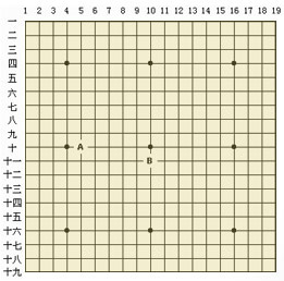 棋盤上的九個(gè)部分只是大致的劃分,并沒有嚴(yán)格的界限,在這里只作籠統(tǒng)的說明。棋子下在星位上或天元上與棋的內(nèi)容和規(guī)則都沒有直接關(guān)系!靶亲迸c“天元”只是棋盤的標(biāo)位。