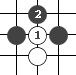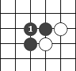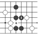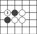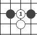 把雙方的棋子分割成兩部分,叫“斷”。如圖的白1就把兩個黑子斷開了。   緊靠雙方棋子的旁邊下一子,叫“碰”。如圖的黑1。