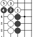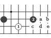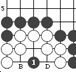 黑1這一手稱“刺”,好象長矛對準虎口刺去。   白1的走法術(shù)語稱“尖”。即在原有棋子的斜線上下一子。除白1外,朝其他三個斜角走c、d、e都稱“尖”。