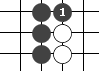 使自己的子成曲形,并緊貼著對方棋子的下法叫“曲”,如圖中的黑1。
