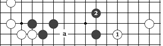 白1掛后,黑不在a位飛,而是走2,這一手叫“拆”,從原有棋子的同一條橫線上,向左、右間隔著下子叫“拆”。中間隔一路是“拆一”,隔二路是“拆二”,以此類推 ”。